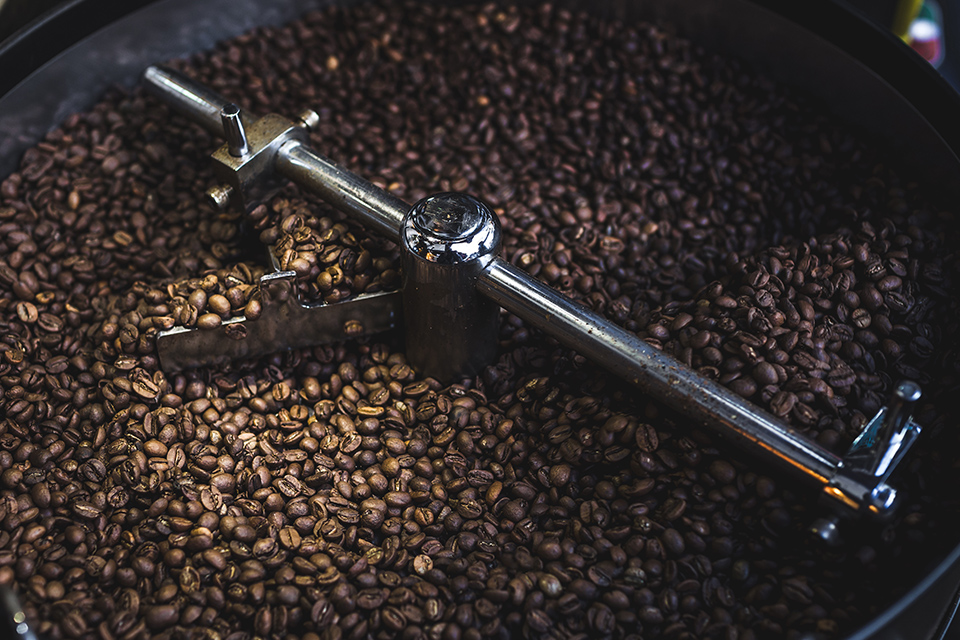 店のコーヒーは、直火式ロースターでじっくりと焙煎しています。