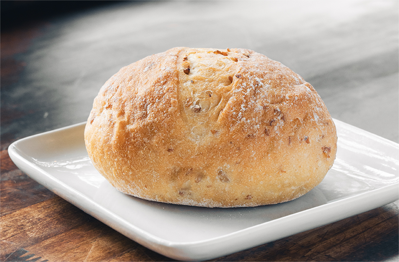 しっかりとした食べ応えと香ばしい風味が特徴。パティや野菜といった具材の味をしっかりと受け止め、全体の調和を一層引き立てます。
