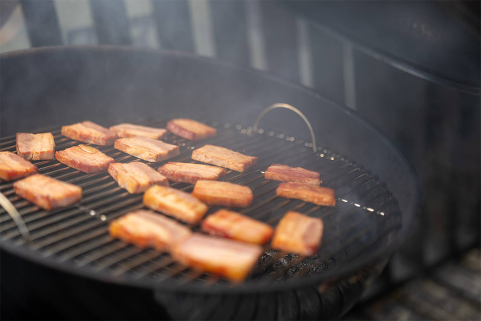 燻製ベーコンバーガーのベーコンはお店で燻製したベーコンを使用しています。